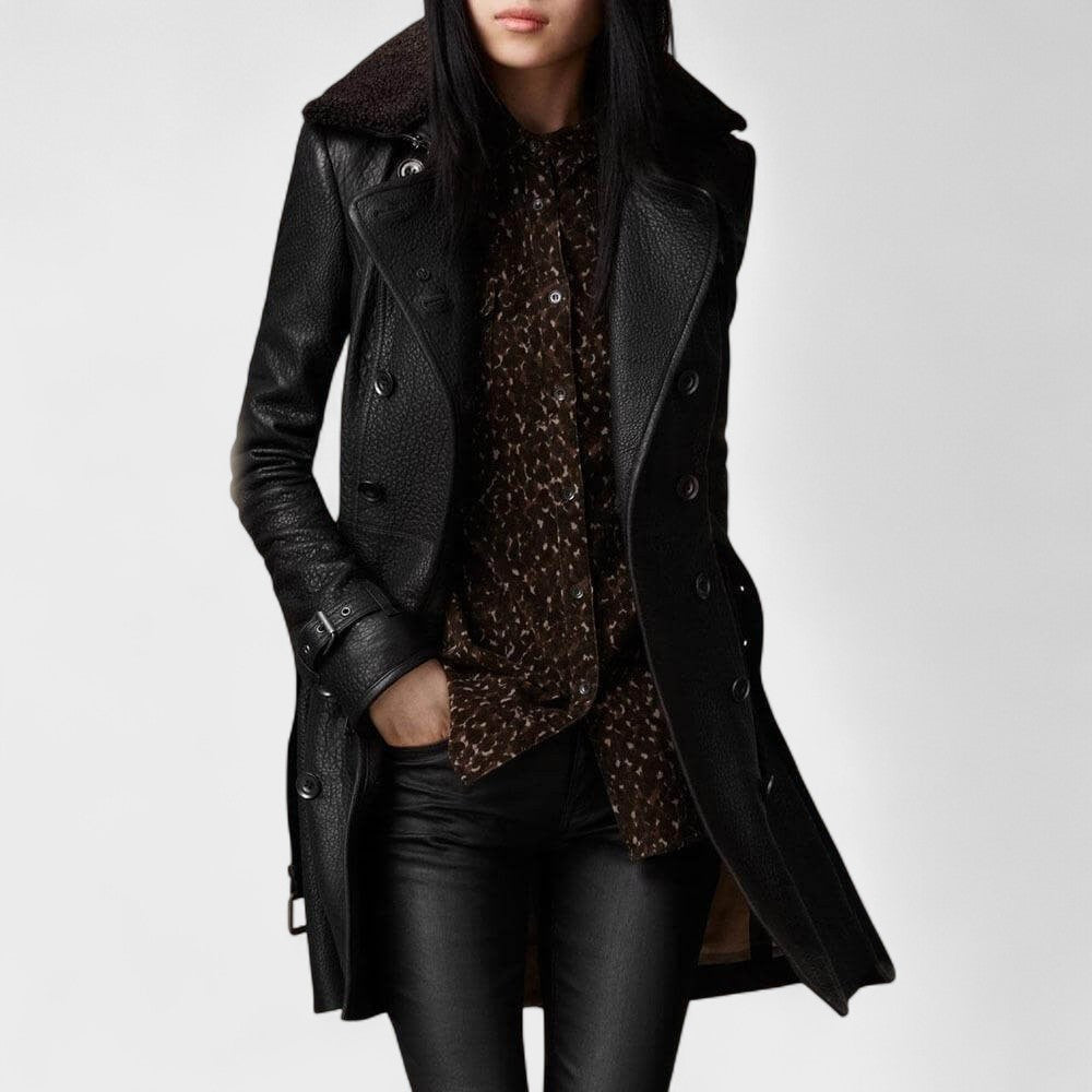 Emelje fel stílusát a Joana kabáttal, amely kiváló minőségű bőrből készült, olyan nők számára, akik értékelik a kifinomultságot és a funkcionalitást. Az alakra szabott fazon kiemeli a sziluettet, míg a klasszikus és időtlen design biztosítja, hogy ez a darab az új alapdarabja legyen a ruhatárában.
